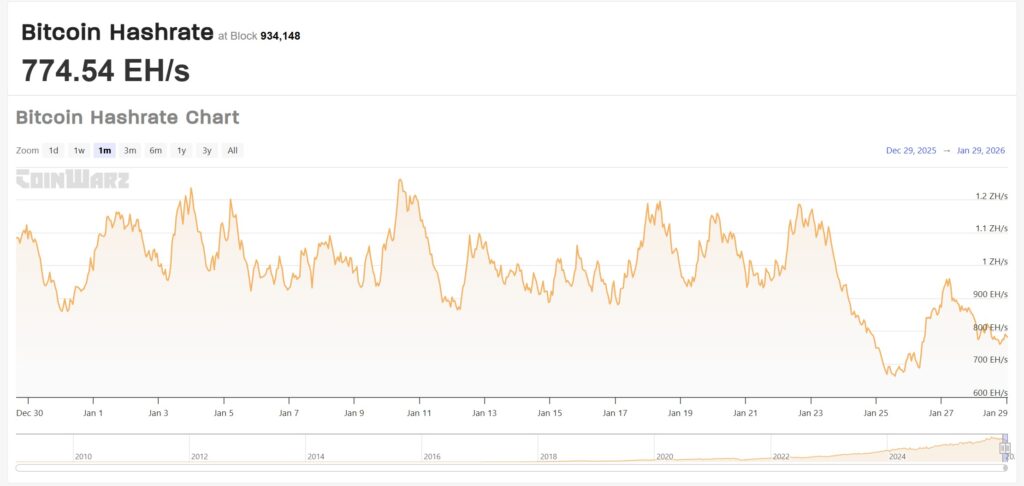 Nos últimos dias, condições climáticas extremas nos EUA provocaram queda acentuada do hashrate — o poder computacional total da rede Bitcoin — chegando a uma mínima em sete meses, com cerca de 663 exahashes por segundo (EH/s) no domingo, depois de uma redução de até 40% em apenas dois dias.