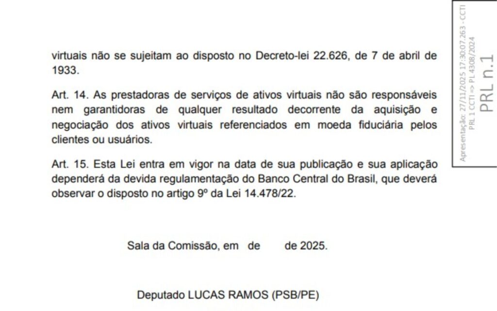 O texto substitutivo, apresentado por Ramos, surge em um momento de expansão do setor: o volume negociado de criptoativos no Brasil saltou de R$ 4,9 bilhões em 2024 para R$ 6,5 bilhões apenas até agosto deste ano. “A proposta busca preencher lacunas legais e oferecer segurança jurídica ao ecossistema de bitcoin e criptomoedas nacional”, destacou o relator, enfatizando a urgência de um ambiente digital seguro e competitivo.