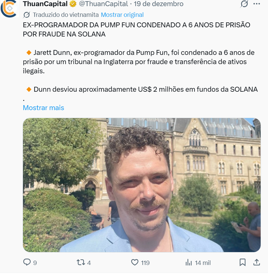 Em maio de 2024, Jarett Dunn, um cidadão canadense que trabalhou apenas seis semanas como desenvolvedor sênior na Pump.fun, desviou aproximadamente US$ 2 milhões em Solana dos fundos da plataforma. Em vez de ficar com o dinheiro, ele distribuiu os ativos para milhares de endereços aleatórios na blockchain e confessou o crime imediatamente nas redes sociais.