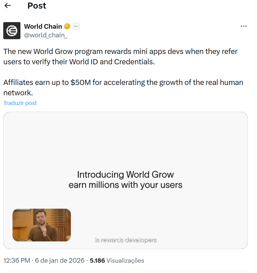 Com o World Grow, desenvolvedores passam a ter acesso a uma nova fonte de receita recorrente, baseada no engajamento real de usuários. De acordo com o anúncio oficial, projetos elegíveis podem receber pagamentos contínuos, com valores que variam conforme o crescimento e a retenção de usuários verificados dentro do ecossistema.